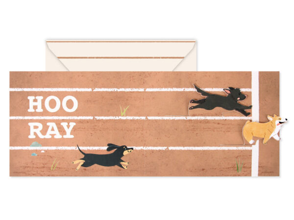 Transform any occasion into a memorable one with this Dog Race Sliding Greeting Card! Designed with intricate details, this card is part of our Up With Paper Range. The unique sliding mechanism adds an element of surprise and charm that your customers will love. Perfect for any store looking to add a special touch to their inventory.