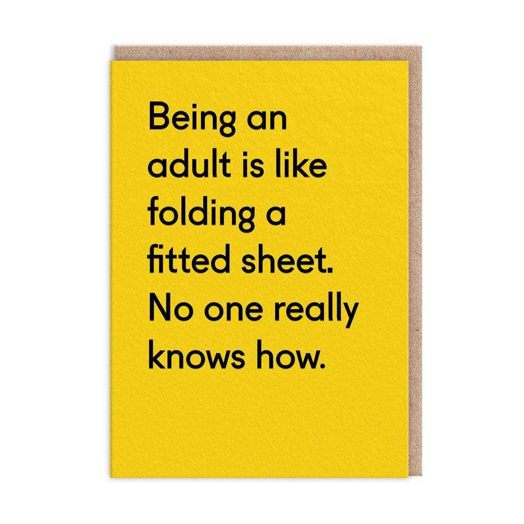 Dare to do the impossible! Twin Pines captures the universal struggle—send this card to anyone who hates wrestling with elastic corners.