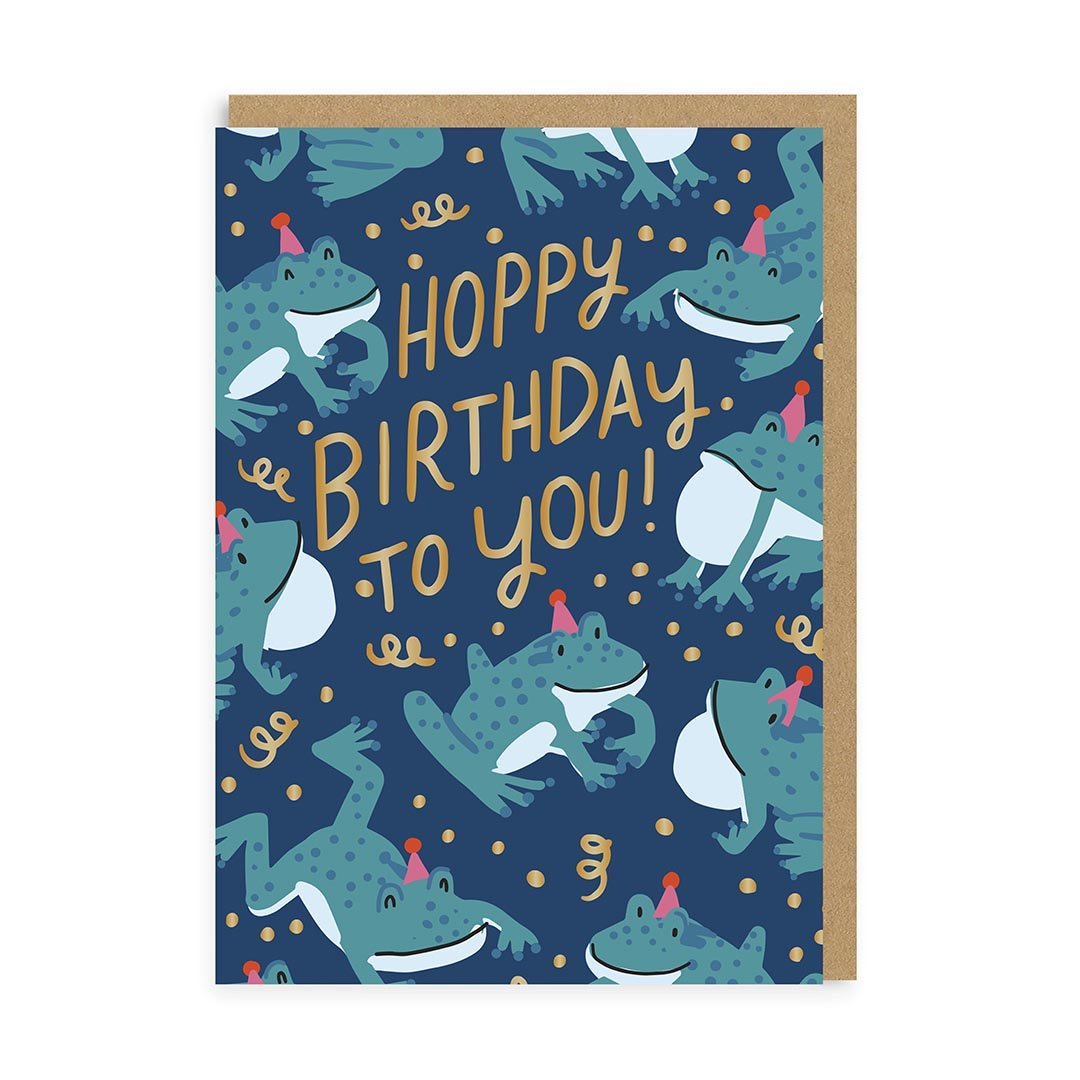 These hoppy little frog friends are here to wish you the best birthday ever! Featuring some super snazzy gold foiled lettering to make it really stand out and shine!