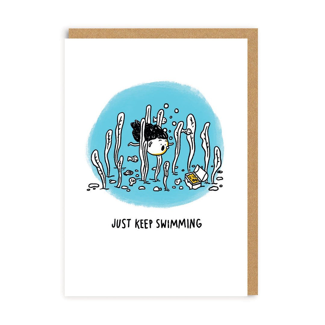 Designed by Kim Ku. A motivational nod to keep going, no matter the current. A6, blank inside, made in the UK—just keep sending positivity.