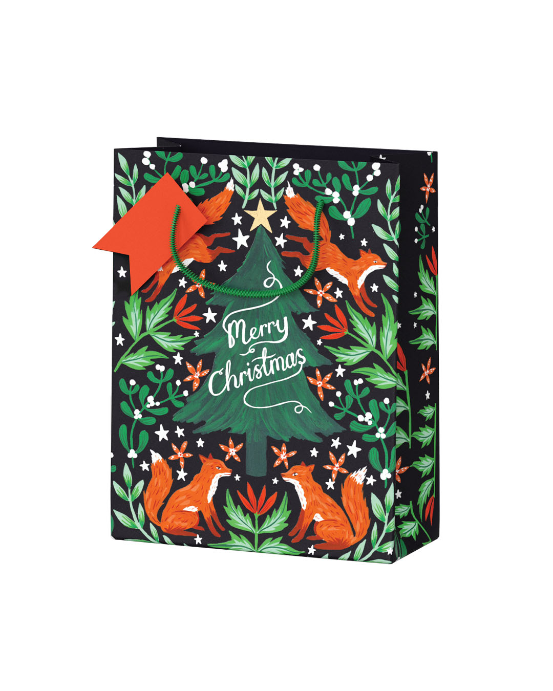 Designed by Papio Press. Cute foxes frolic on a festive bag, perfect for wrapping small gifts or spreading cheerful vibes.