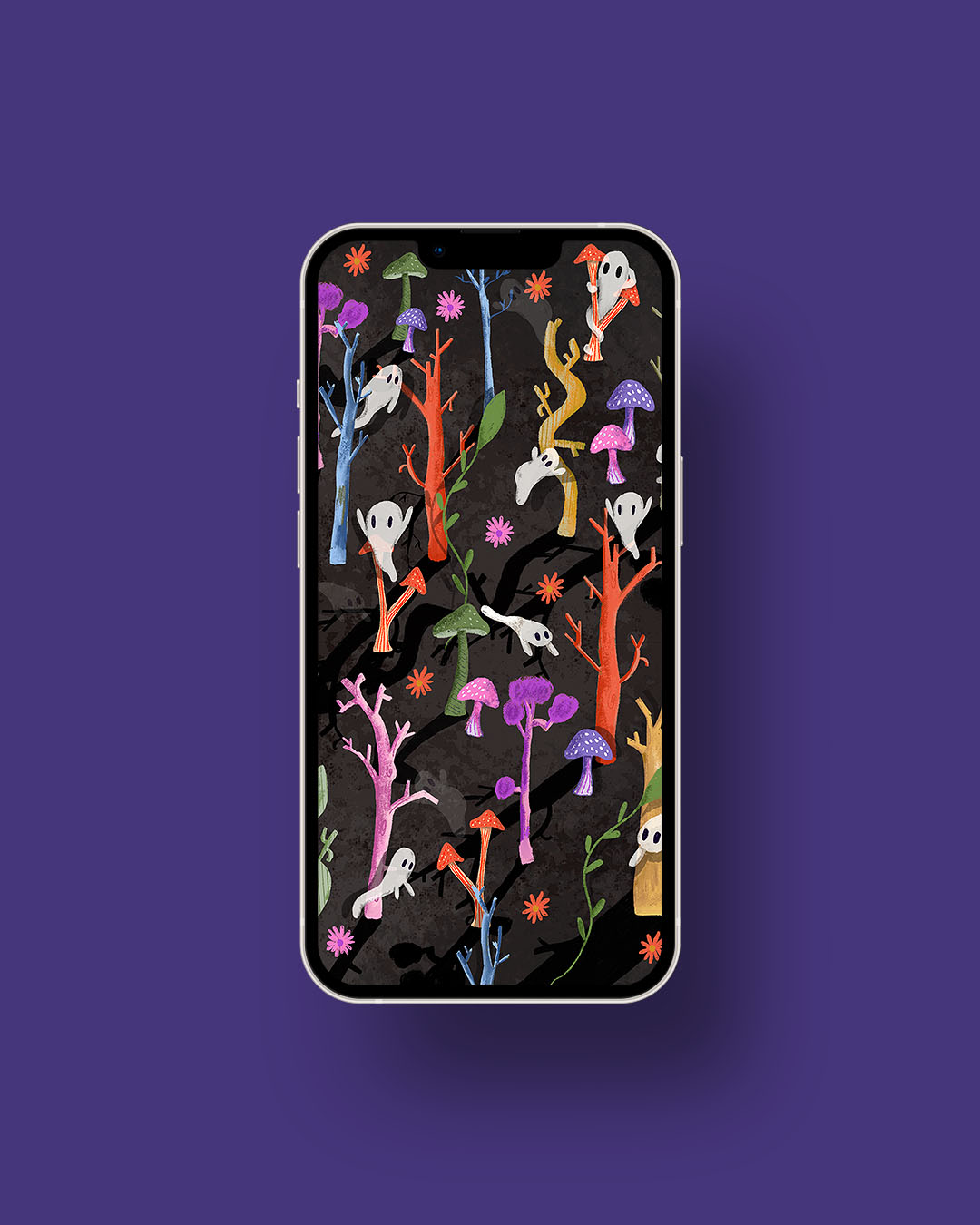 Introducing Papergang's "Ghosts & Ghouls" Wallpaper - A Halloween-inspired wallpaper designed by Ohh Deer. This creative and spooky print will add a hauntingly unique look to your desktop. mobile or tablet!