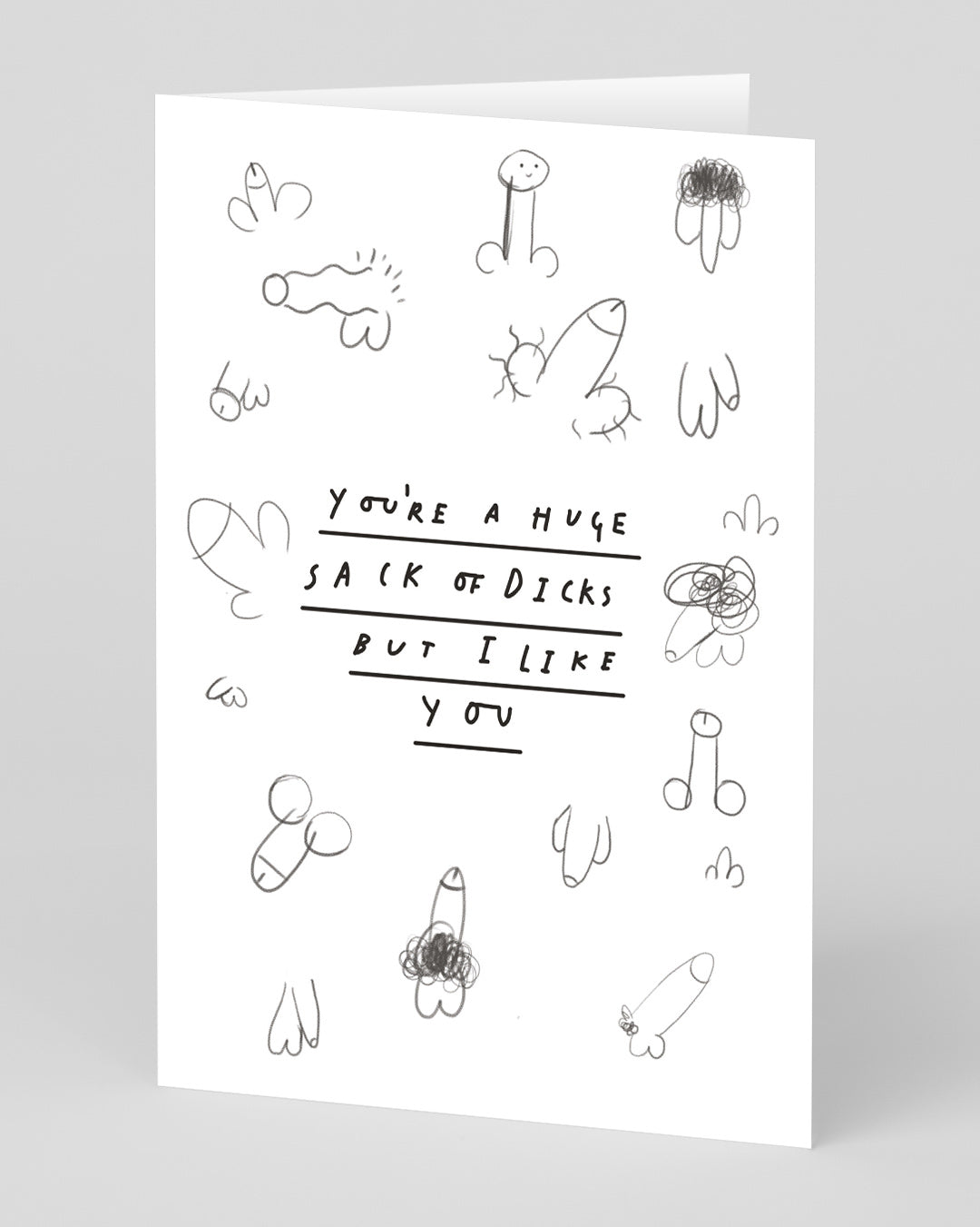 Nothing says "I like you" more than calling someone a Big Sack o' Dicks! So this card is just perfect for those tender moments!