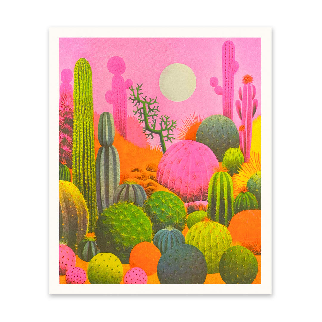 Inject a playful desert vibe into your decor with the Pink Cacti Art Print—vibrant, quirky, and printed on sustainable card. Designed by Ohh Deer.