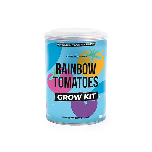This Rainbow Tomato Grow Tin, has everything you need to get started, just add water and sunlight!