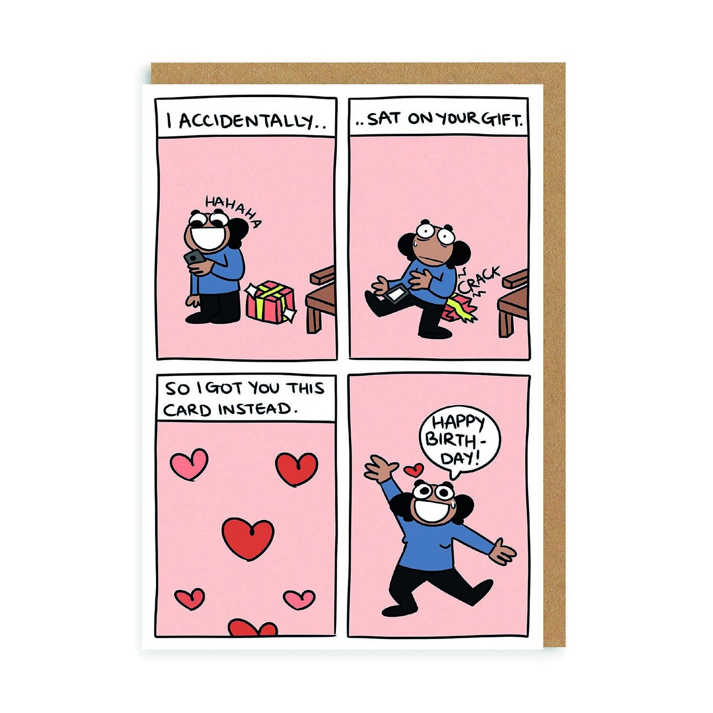 Designed by Aditi Mali. Apologize for squishing the present—deliver laughs instead of a perfect package. Sustainably sourced, Kraft envelope included.