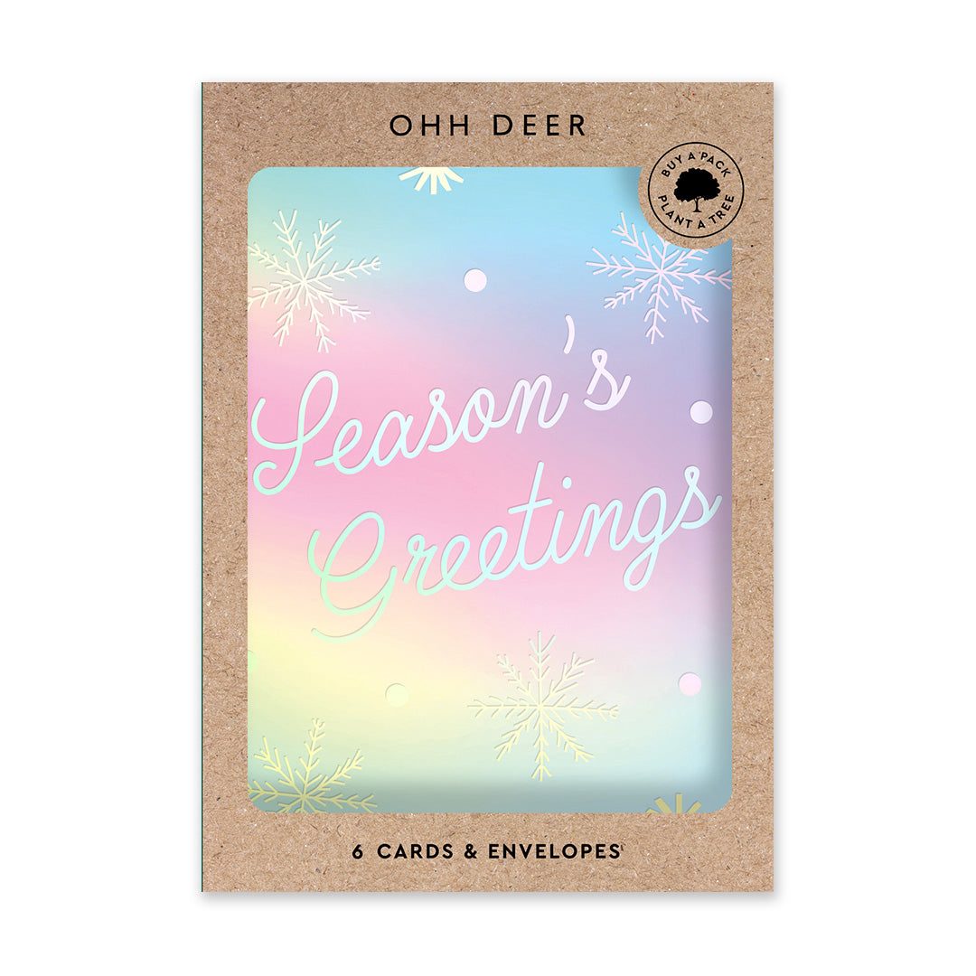 Pack of 6 Christmas Cards - Seasons Greetings Holographic